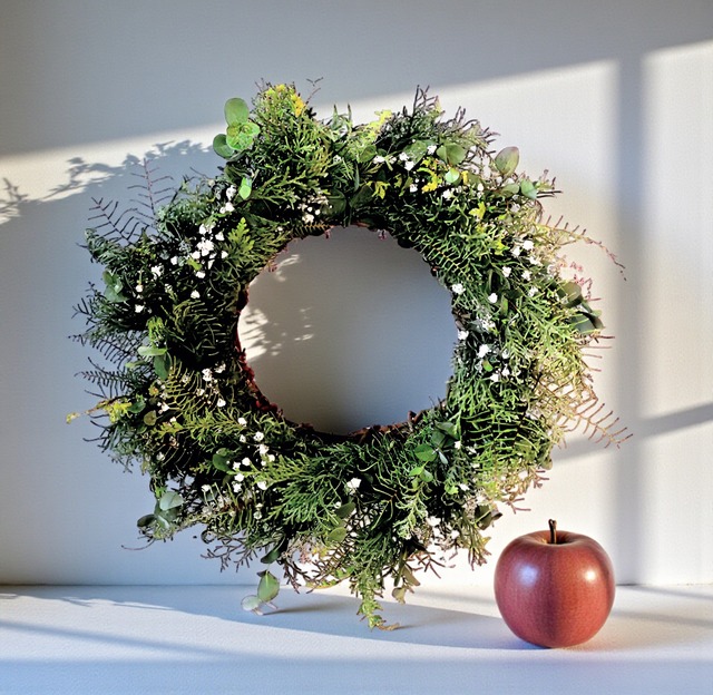### かすみ草と針葉樹のフレッシュグリーンリース 自然の美しさを感じる、かすみ草と針葉樹のフレッシュグリーンリースをご用意しました! このリースは、約30cmのサイズで、独特の質感とかすみ草が特徴の華やかなデザインです。2025年12月23日に製作され、数カ月はその美しい色合いを保ちます。その後はレースのような雰囲気に変わり、魅力が増します!贅沢な緑のリースが、あなたのインテリアに自然の癒しをもたらし、特別な空間を演出します。 すべて手作りで、丁寧な仕上がりとなっています。 丁寧に梱包し、簡易ラッピングでお届けいたします。 ■ 色合いとサイズ - リースのサイズ: 約30cm - 使用している素材: かすみ草、針葉樹、その他のドライフラワー ■ 素材と製造国 - 使用素材は全て高品質で厳選したものを使用 - 環境に配慮した製造工程で作られています ■ お手入れと取り扱い注意事項 - 直射日光を避けてお楽しみください。 - 高温多湿の環境には置かないようご注意ください。 - お子様やペットの手の届かない場所に飾っていただくことをお勧めします。 ■ 発送と注文について - 注文後、3営業日以内に発送いたします。 - 丁寧に梱包し、安全にお届けできるよう心がけています。 ■ その他の情報 - かすみ草と針葉樹のフレッシュグリーンリースは、インテリアとしての魅力だけでなく、特別なシーンの装飾にもぴったりです! - あなたの空間に自然の美しさを感じながら、心豊かな時間をもたらします。 この機会に、かすみ草と針葉樹のフレッシュグリーンリースであなたのお部屋を華やかに彩ってみませんか?