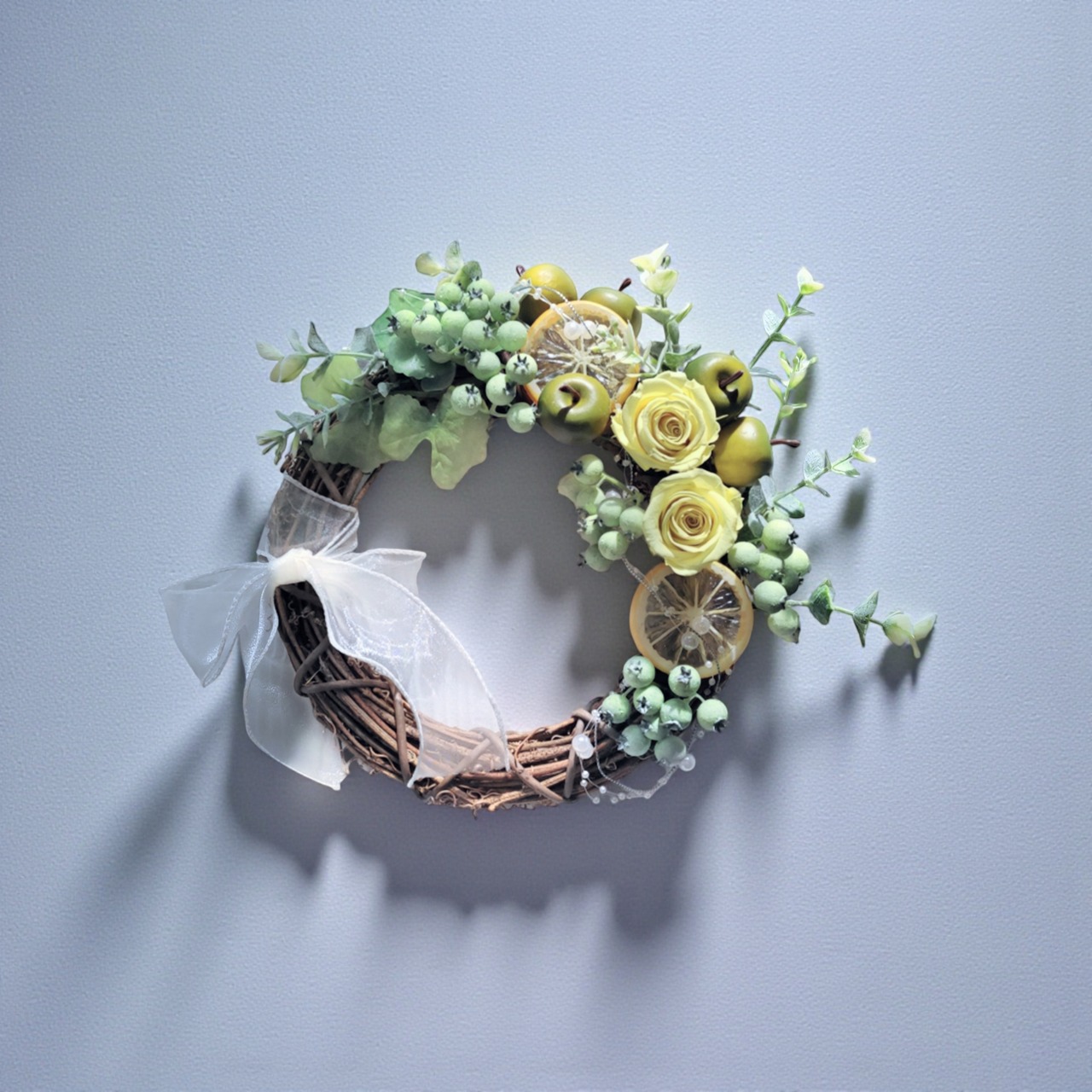 あなたの空間に爽やかさをもたらすレモンとリンゴのリース、ぜひこの機会にお楽しみください!