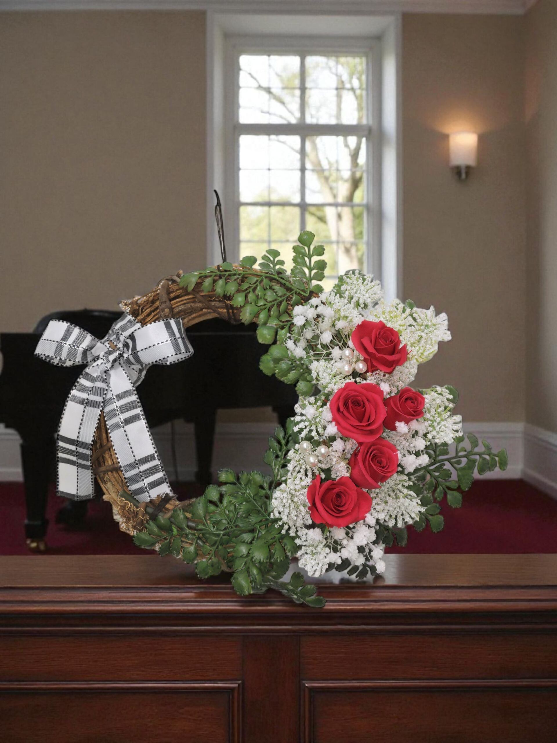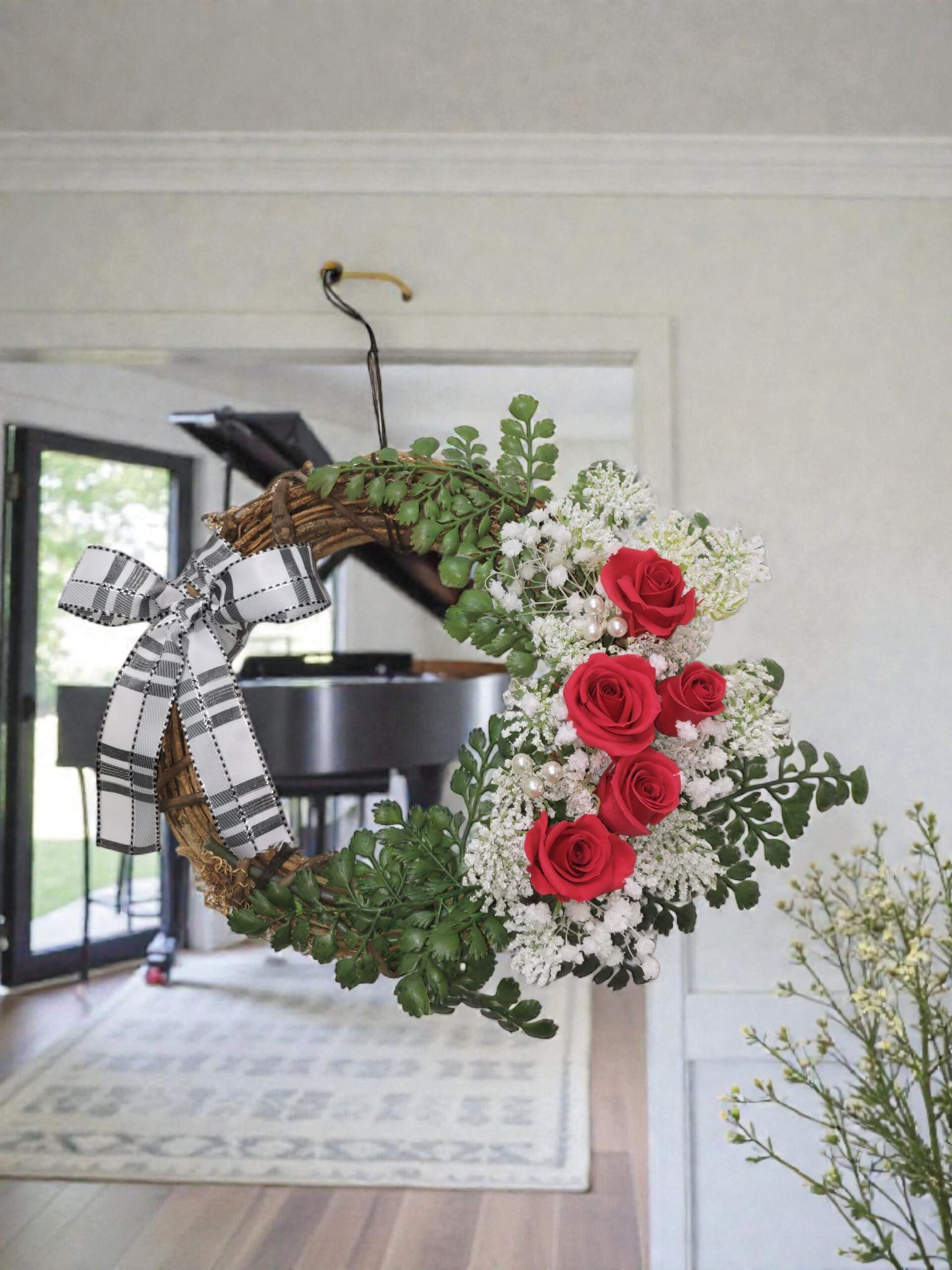 - 赤い薔薇のリースは、インテリアとしての美しさだけでなく、特別なイベントやお祝いの席にも最適です!